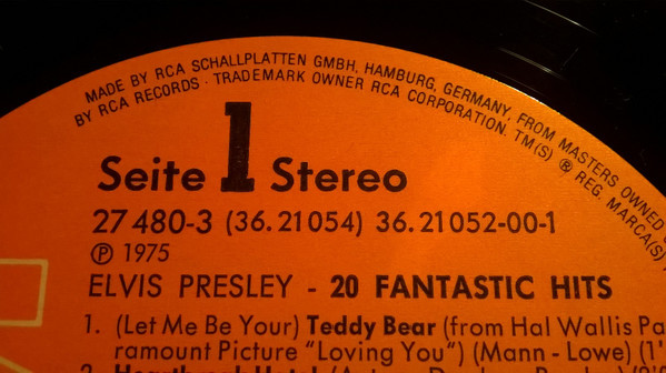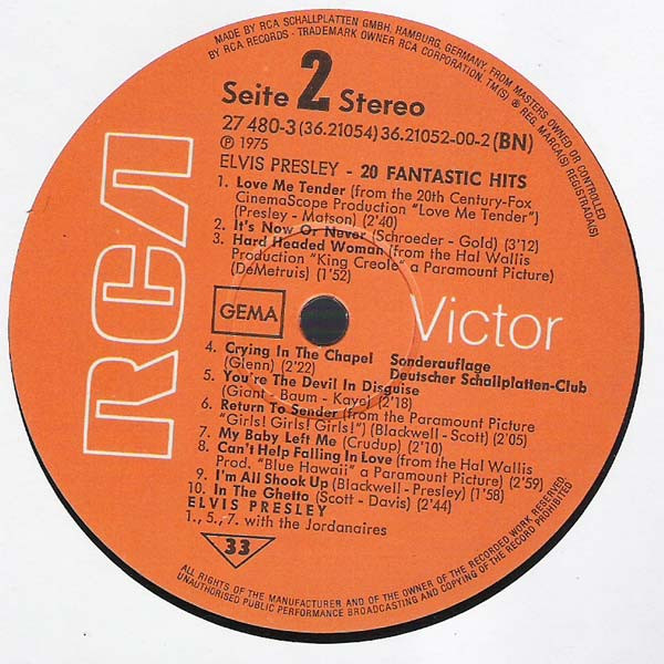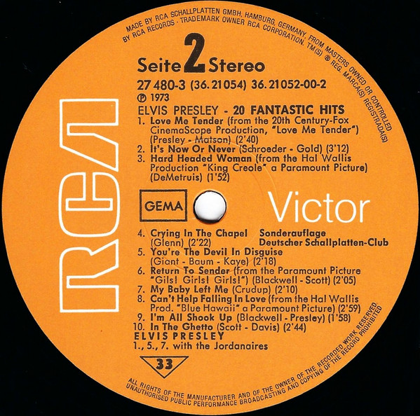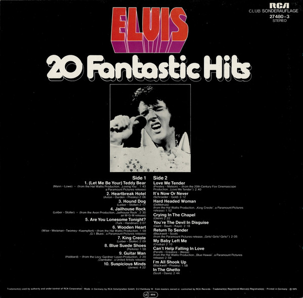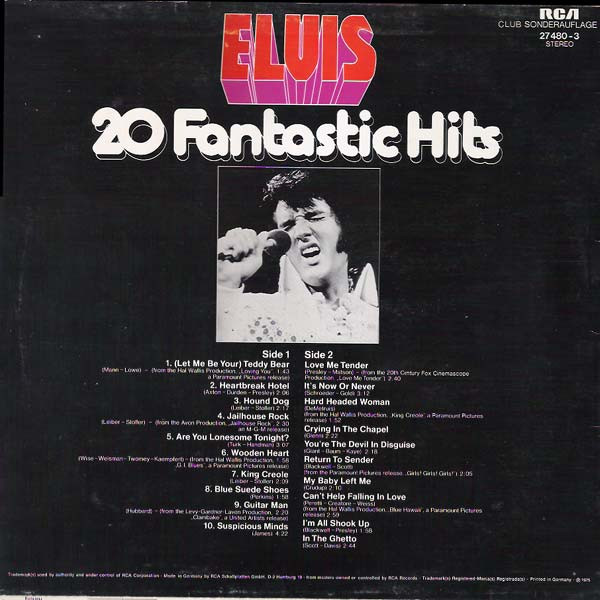 | Elvis Presley – 20 Fantastic Hits Label: