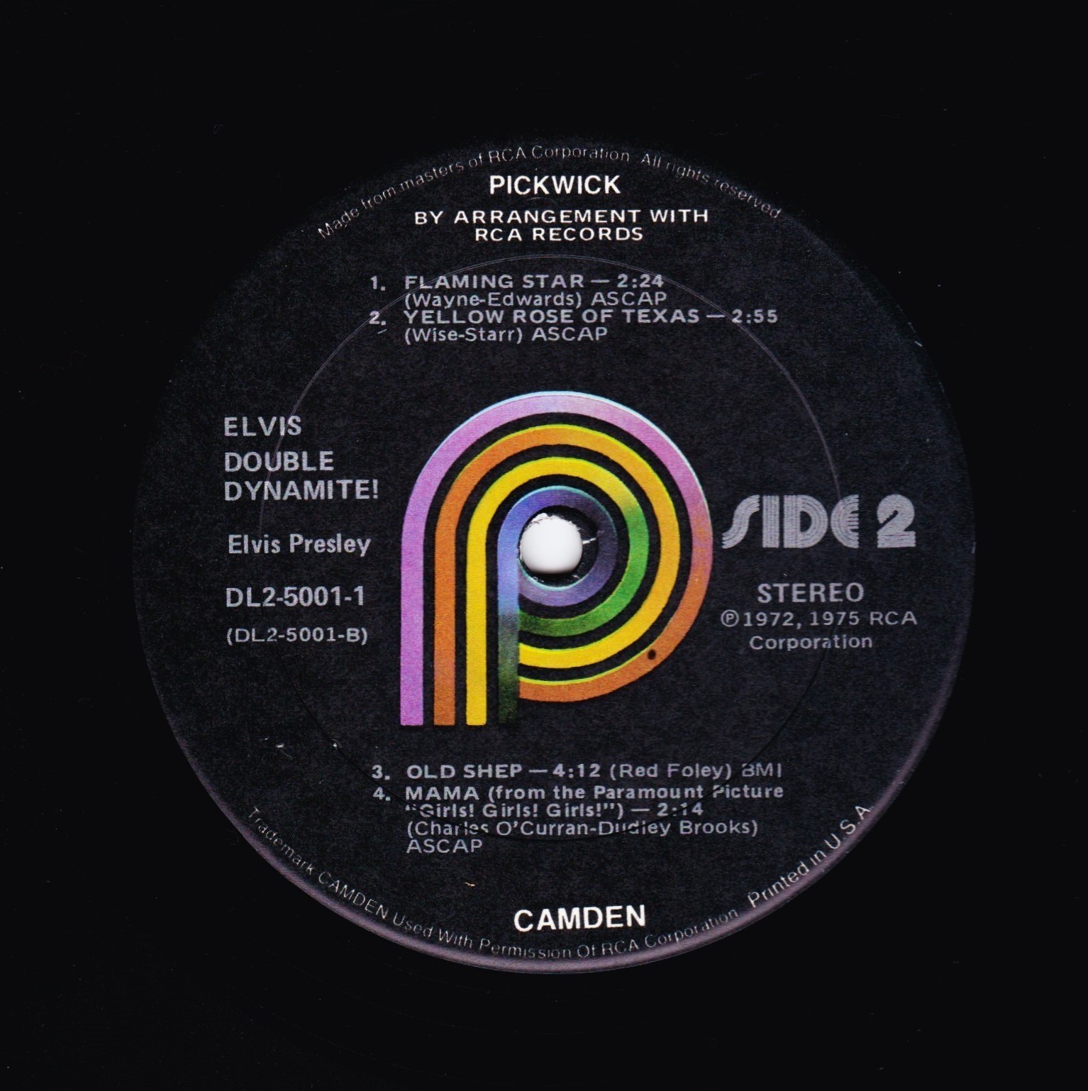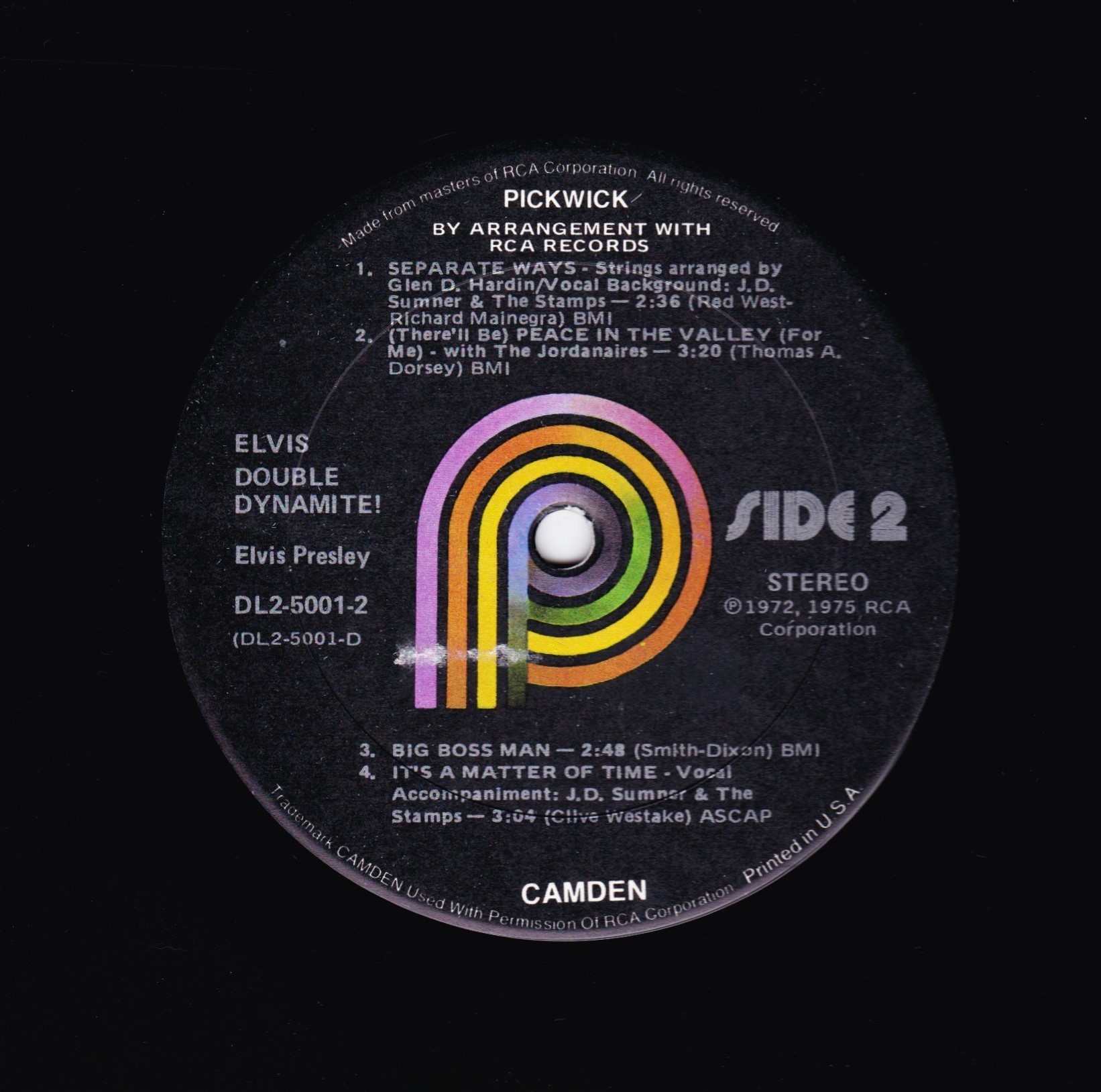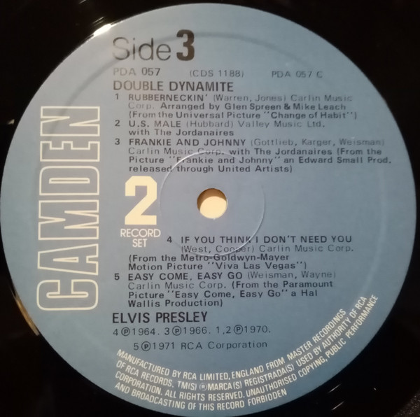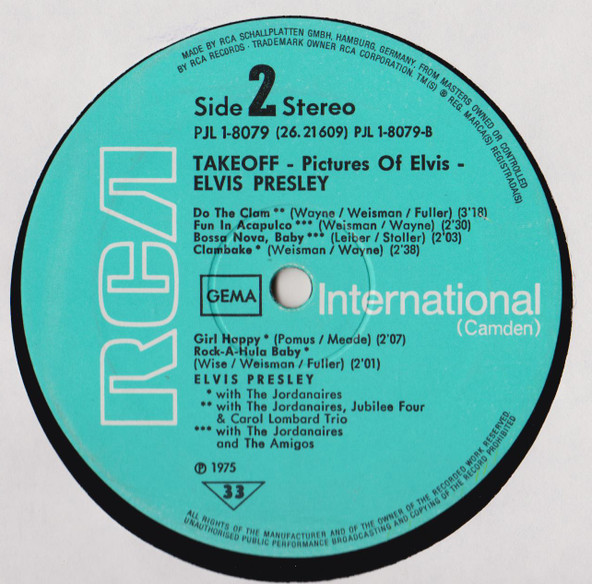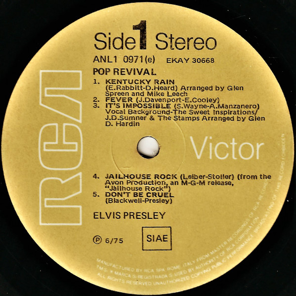 top left under Elvis. Catalogue number bottom right. |