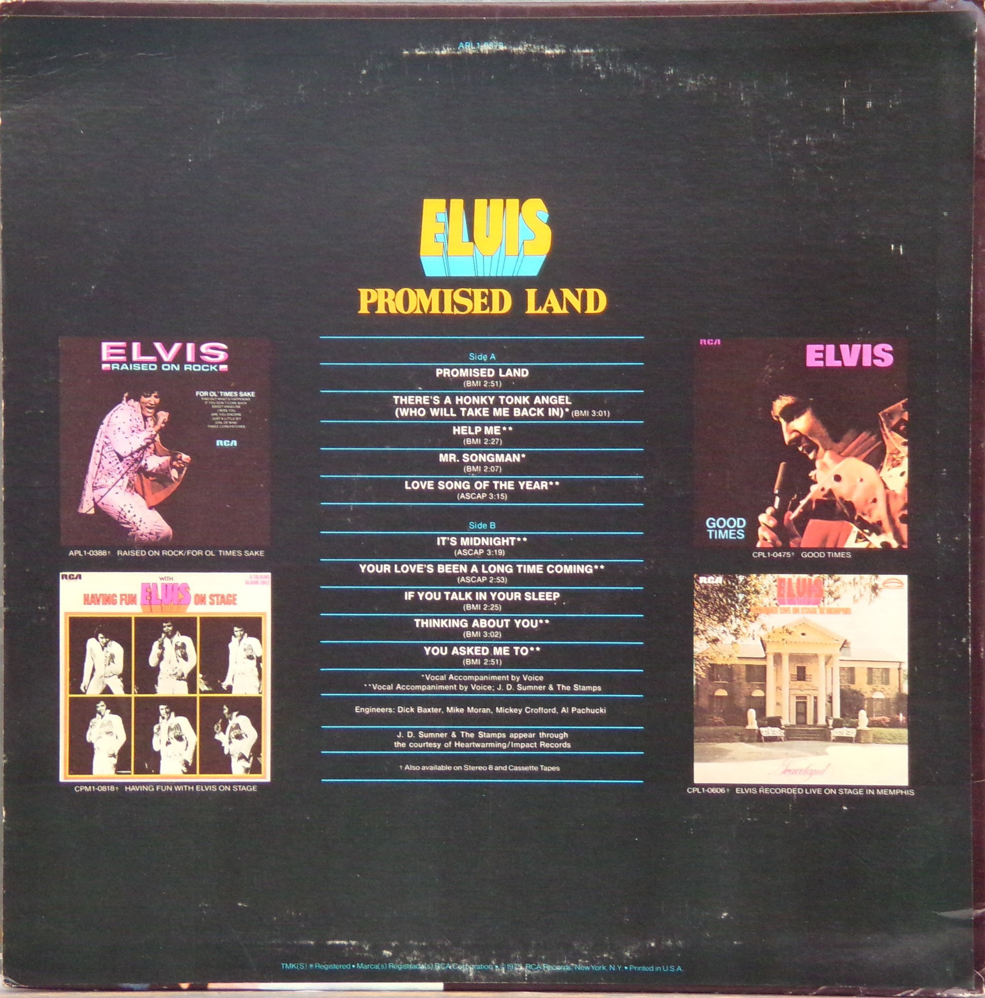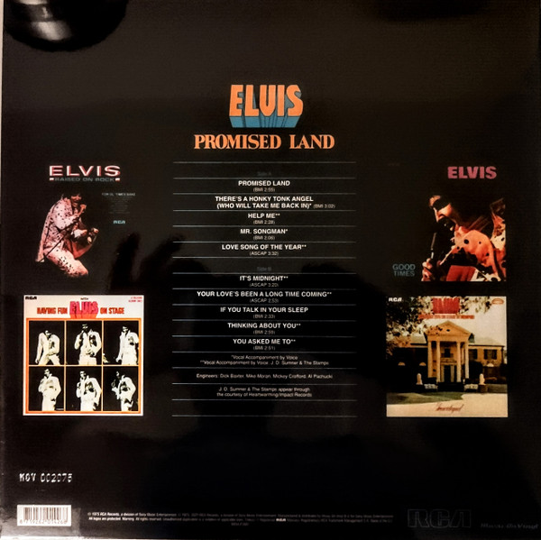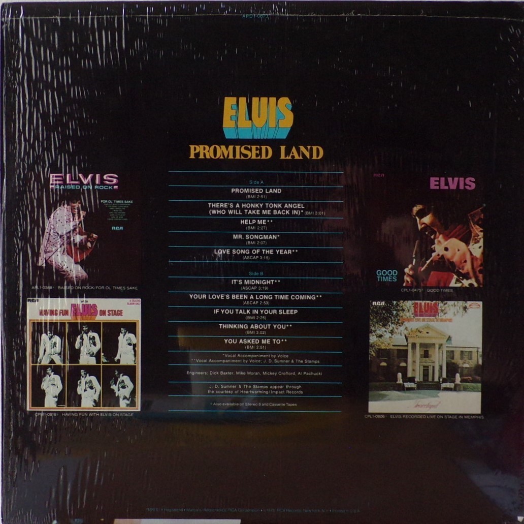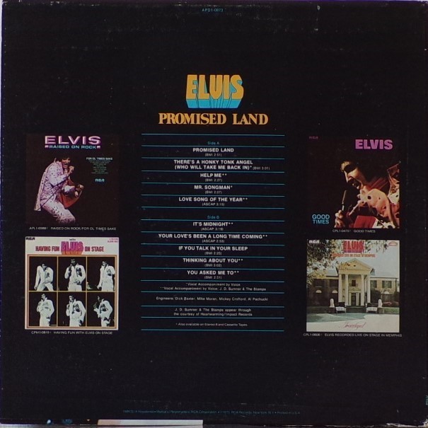 LAND (LP) (US) RCA APL1 0873 Released: January 1975 Side 1 Promised Land There's A Honky Tonk Angel (Who Will Take Me Back In) *** Help Me Mr Songman ** Love Song Of The Year ** Side 2 It's Midnight Your Love's Been A Long Time Coming *** If You Talk In Your Sleep Thinking About You ** You Asked Me To * * Recorded: Stax Studios, Memphis, December