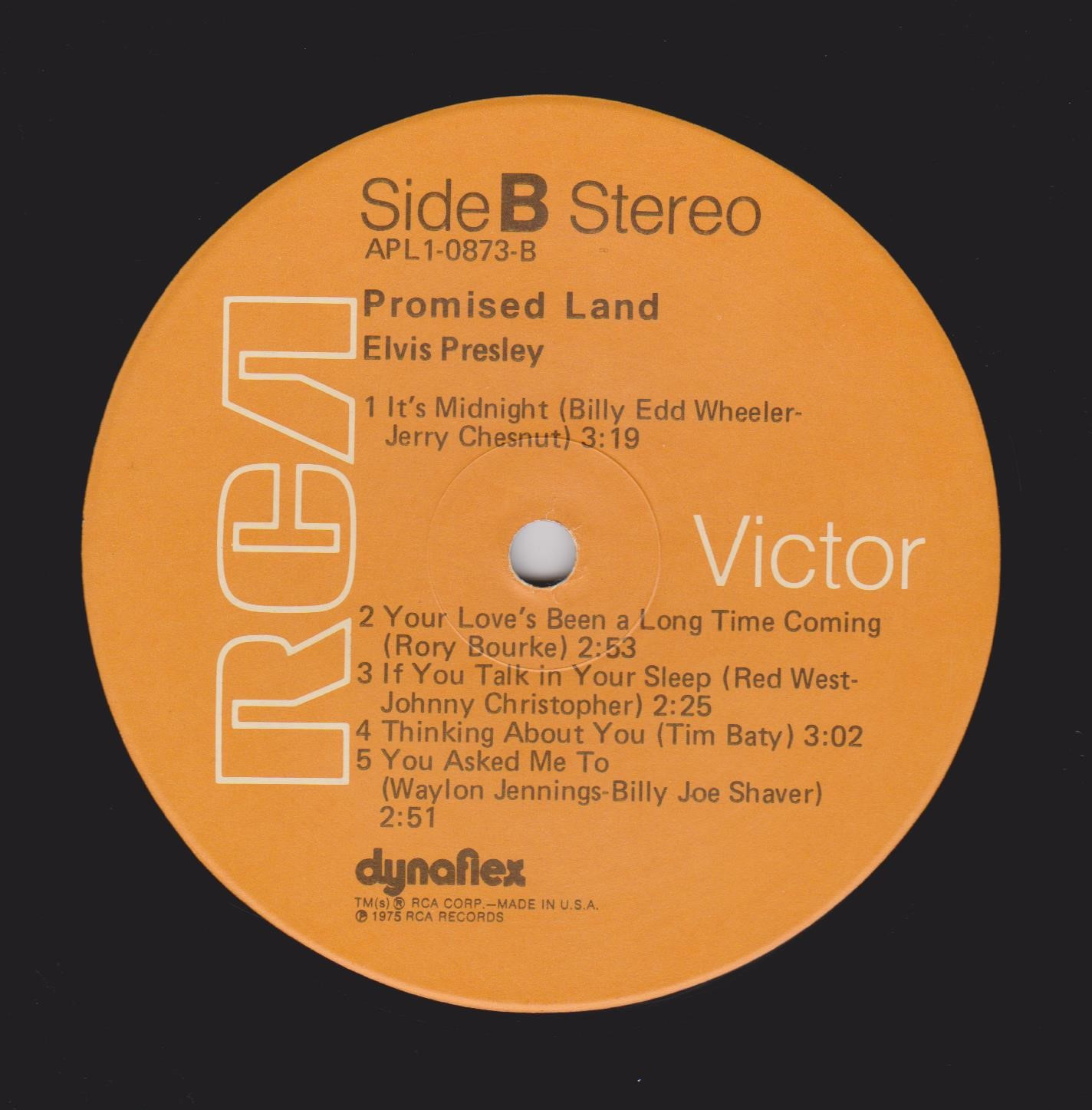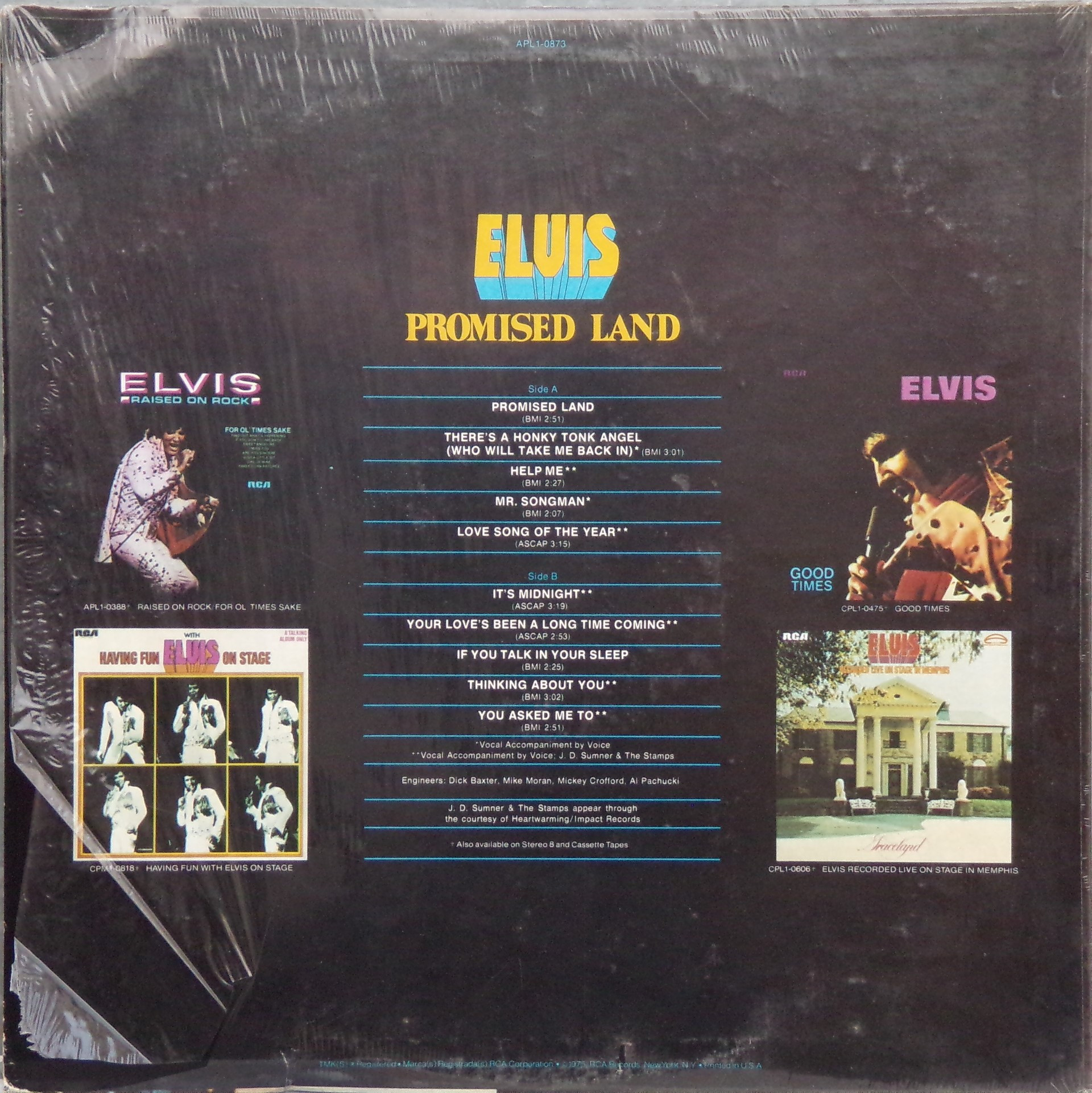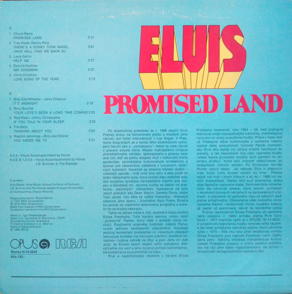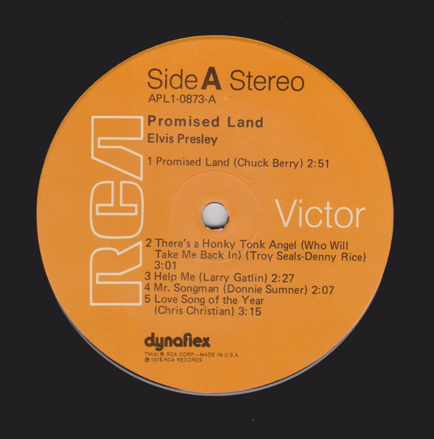 LAND (LP) (US) RCA APL1 0873 Released: January 1975 Side 1 Promised Land There's A Honky Tonk Angel (Who Will Take Me Back In) *** Help Me Mr Songman ** Love Song Of The Year ** Side 2 It's Midnight Your Love's Been A Long Time Coming *** If You Talk In Your Sleep Thinking About You ** You Asked Me To * * Recorded: Stax Studios, Memphis, December
