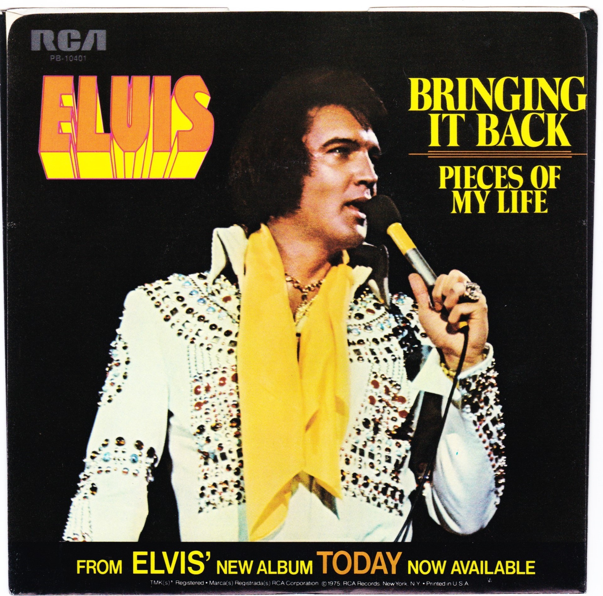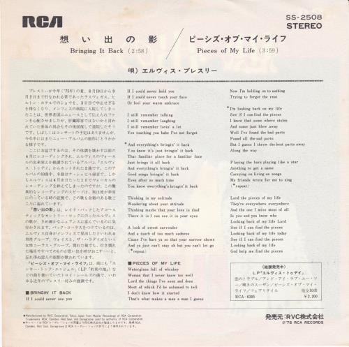 Pieces Of My Life Brief History : Bringing It Back was recorded March 11th, 1975 at RCA Studios, Hollywood & Pieces Of My Life was recorded the following day at the same location. Front Cover : Picture Sleeve |