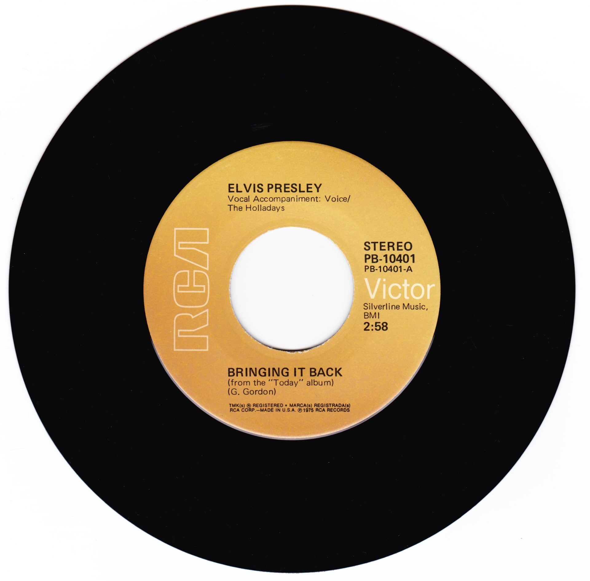 Elvis Presley Music, Inc. PROMOCION PROHIBIDA SU VENTA on white label Publishers ℗ 1975 - 8 RCA Records Matrix / Runout (Label side A): PB-10191-A |