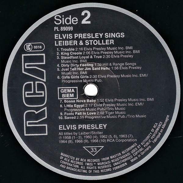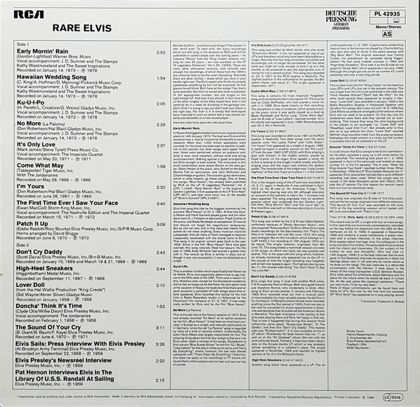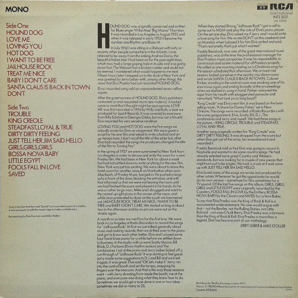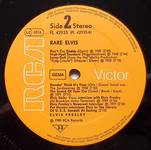 (From the 25th anniversary album, ELVIS 25)Matrix / Runout (Side