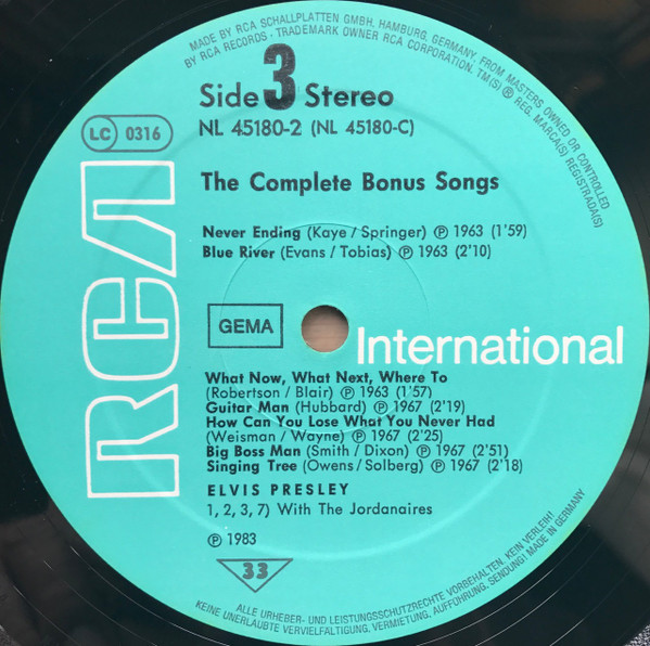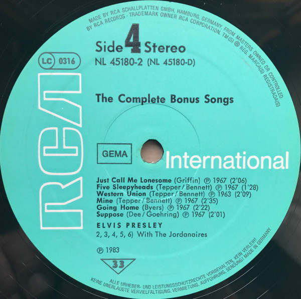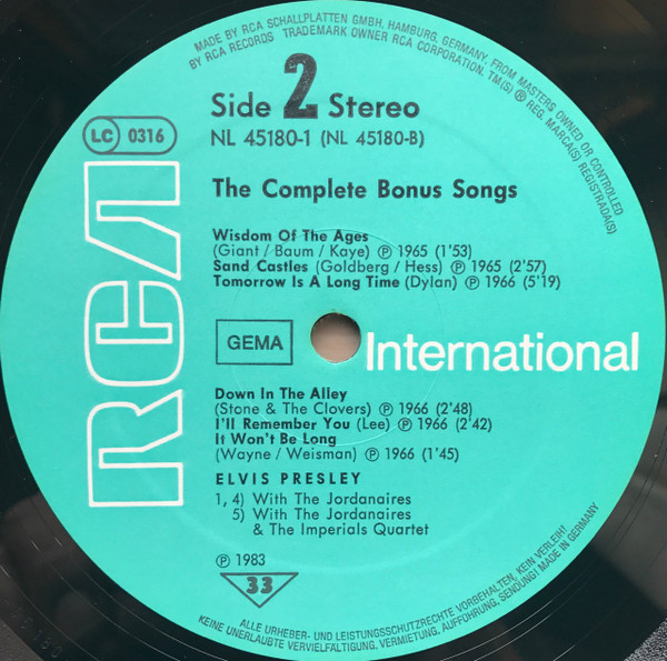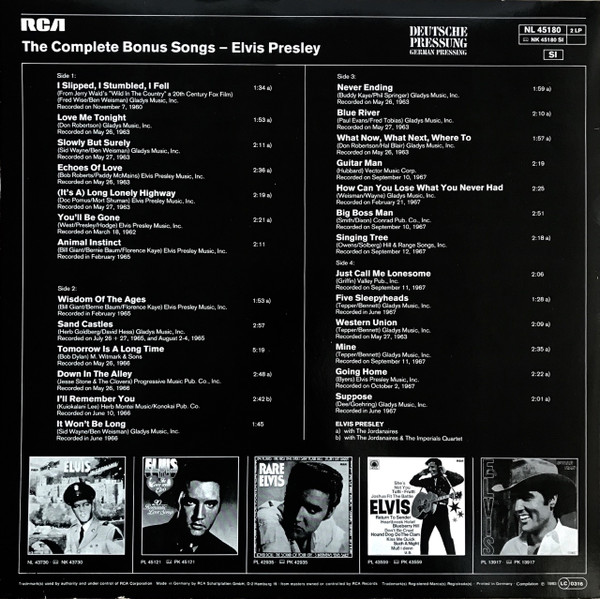Rear Cover : Mock up photo of Elvis. Song titles across