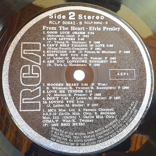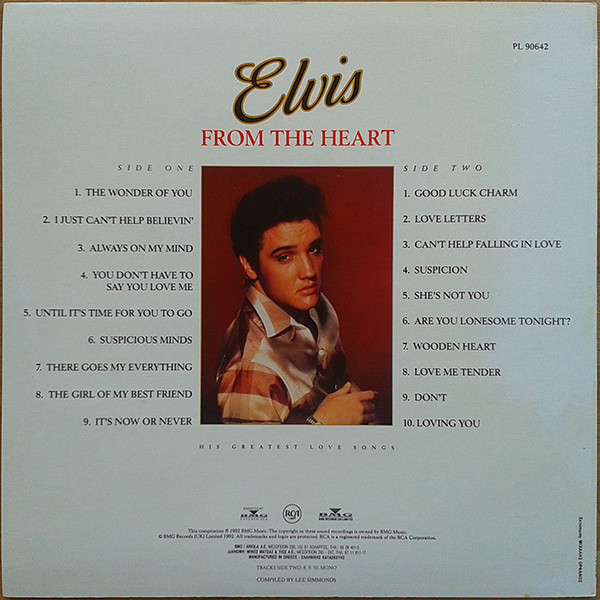 THE HEART (Europe) RCA PL 90642 (LP) Wonder Of You I Just Can't Help Believin' Always On My Mind You Don't Have To Say You Love Me Until It's Time For You To Go Suspicious Minds There Goes My Everything Girl Of My Best Friend It's Now Or Never Good Luck Charm Love Letters (1966) Can't Help Falling In Love Suspicion She's Not You Are You Lonesome Tonight Wooden Heart Love Me Tender Don't Loving You Fool Such As I Love Me I Want You, I Need You, I Love You It's Only Love Unchained Melody (Crisler Arena, Ann Arbor, Michigan, April 24, 1977) |