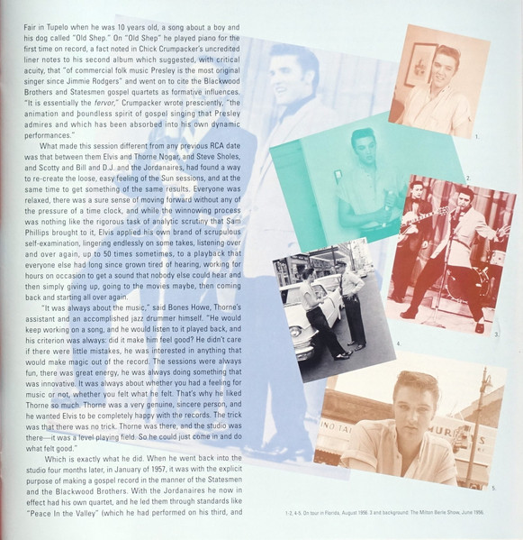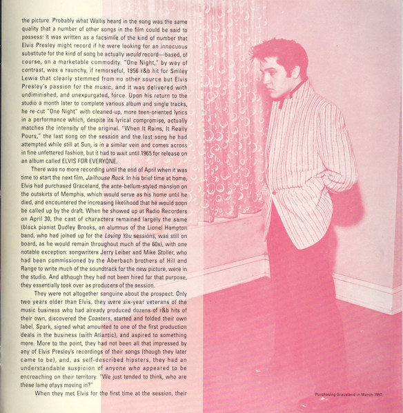 Disc 5 That's When Your Heartaches Begin * Fool, Fool, Fool (Demo) ** Tweedlee Dee (Live) *** Maybellene (Live) **** Shake Rattle And Roll (Demo) ** Blue Moon Of Kentucky (Take 1 Slow) Blue Moon (Take 2) I'm Left, You're Right, She's Gone (Take 5 Slow Version) Reconsider Baby (from Million Dollar Sessions) Lawdy Miss Clawdy (Take 3) Shake Rattle And Roll (Take 8) I Want You, I Need You, I Love You (Take 16) Heartbreak Hotel (Live) ***** Long Tall Sally (Live) ***** Blue Suede Shoes (Live) ***** Money Honey (Live) ***** We're Gonna Move (Take 4) Old Shep (Take 5) I Beg Of You (Take 1?) Loving You (Slow Version) Loving You (Up-Tempo Version) Young And Beautiful (Solo Jail Movie Version) I Want To Be Free (Movie Version Splice of Takes 10, 12 & 13) King Creole (Take 3) As Long As I Have You (Take 8 Long Movie Version) Ain't That Loving You Baby (Take 11 Fast Version) * Recorded: Memphis Recording Service, Sun Studios, Memphis : Acetate July 18, 1953 ** Recorded: Radio Recordings, Lubbock, Texas, January 6, 1955 *** Recorded: Louisiana Hayride, Gladewater, Texas, April 30, 1955 **** Recorded: Louisiana Hayride, Shreveport, Louisiana, August 20, 1955 ***** Recorded: New Frontier Hotel, Las Vegas, May 6, 1956 |